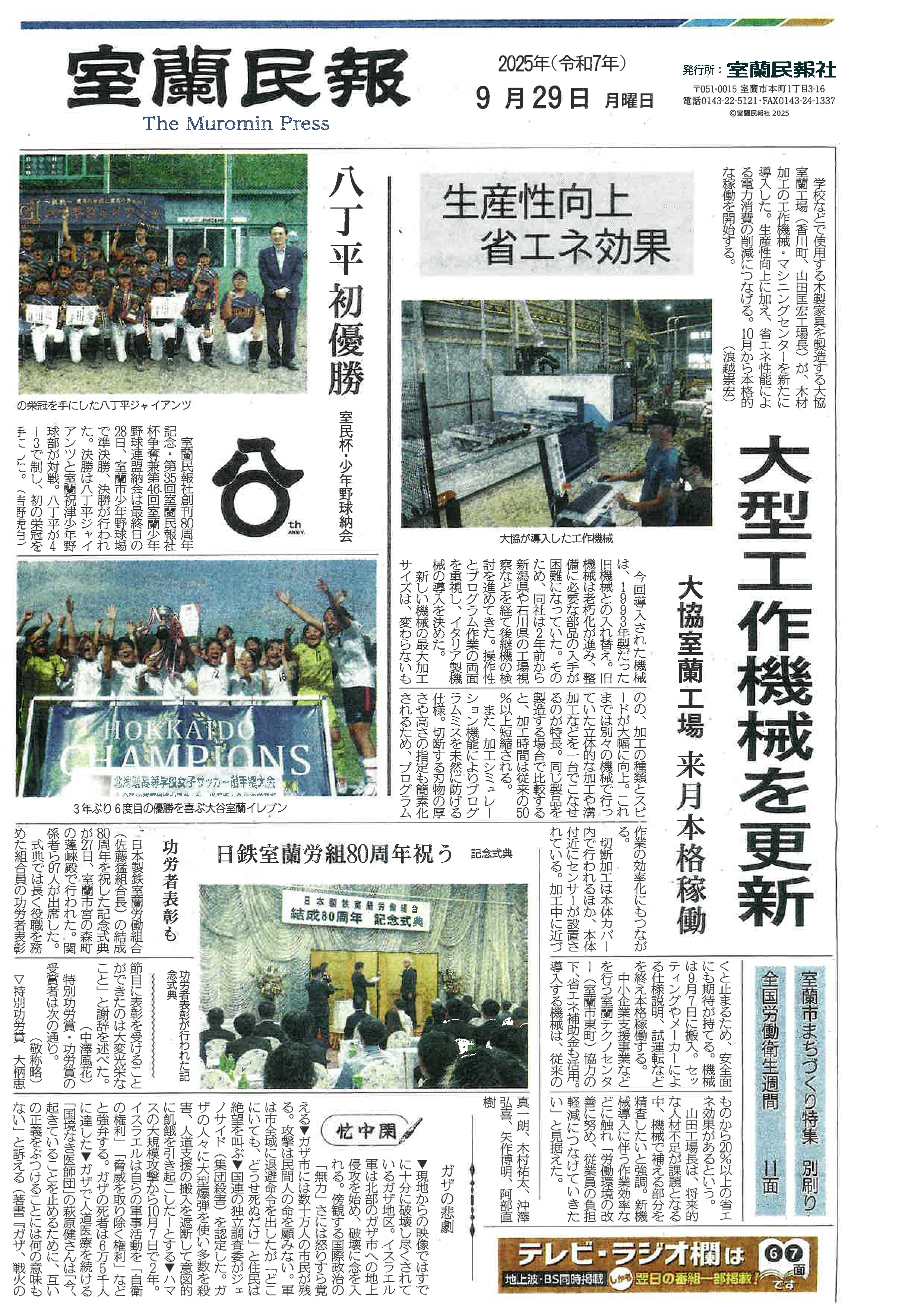 室蘭工場がものづくり補助金を活用し、大型機械を導入して生産性向上を強化して